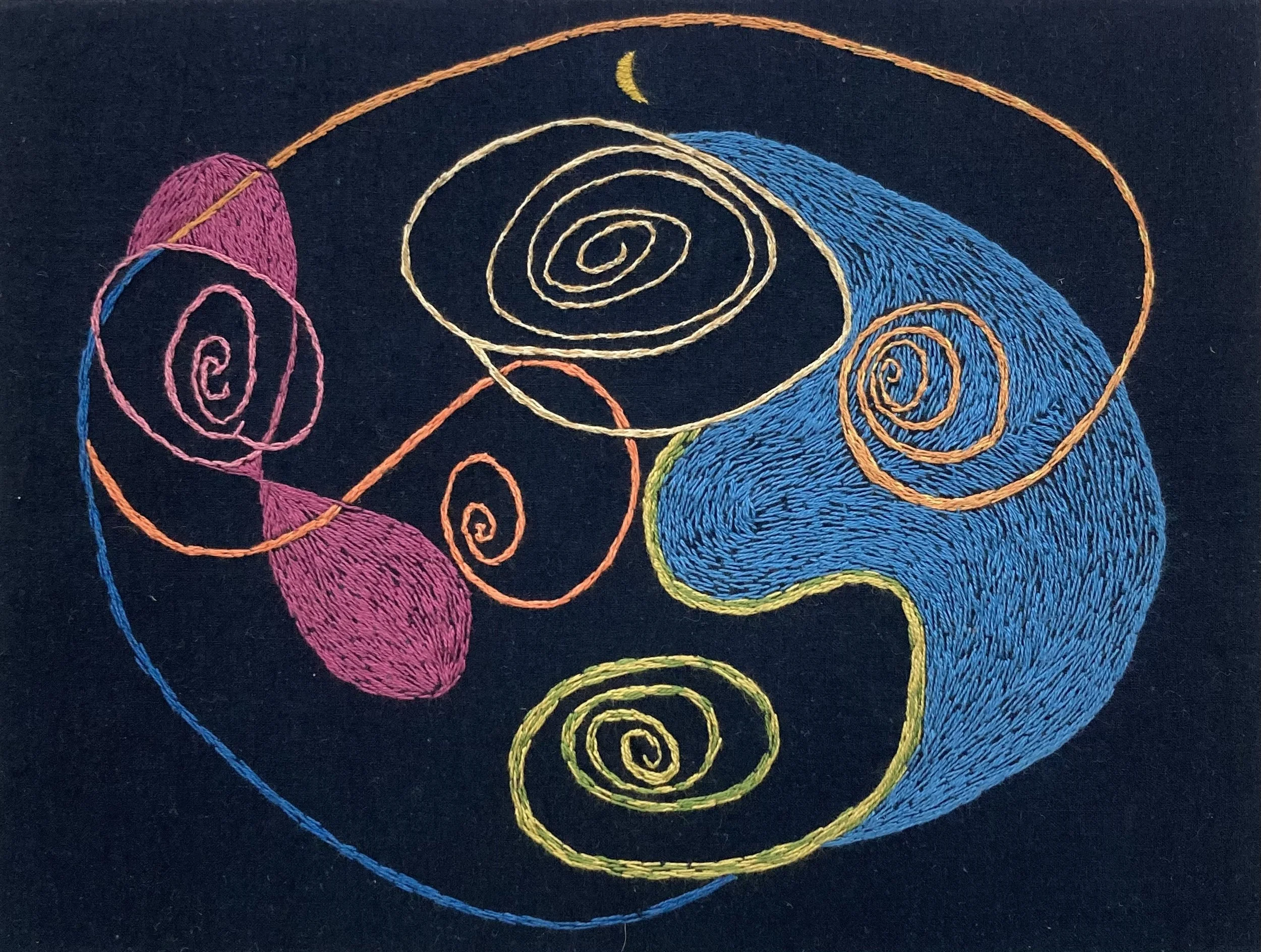 Cotton & silk thread on indigo fabric