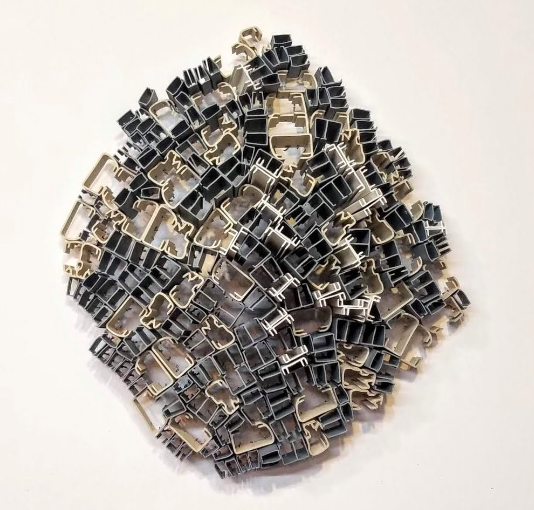 Reclaimed vinyl, nylon, discarded acrylic,